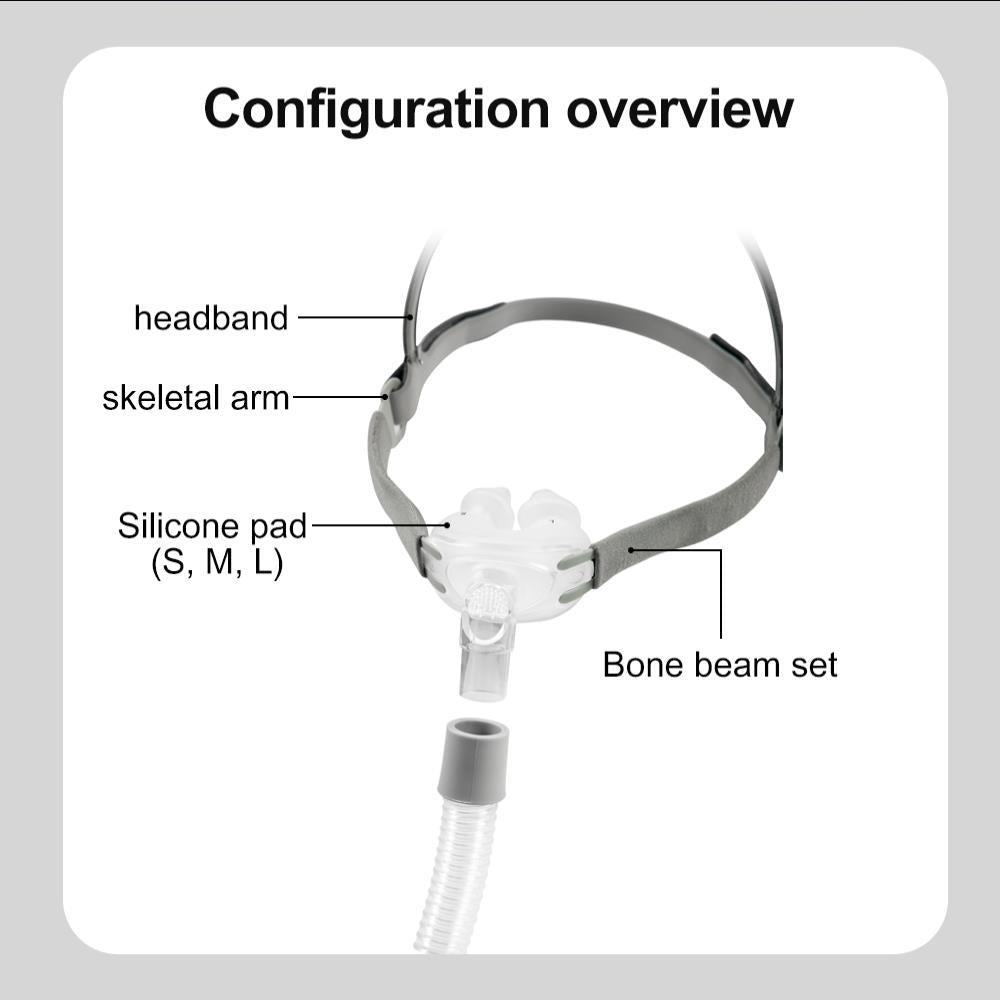 2. Our nasal pillow mask is a complete set, including nasal pillows (S, M, L) and 45 cm hose mask and instructions.