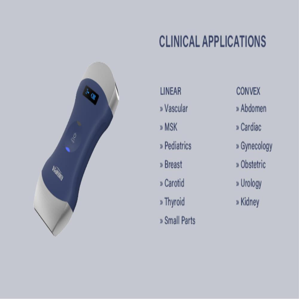 By possessing linear and convex heads at the same time, you can scan the whole body within one smart scanner. By simply flipping around the device, you can switch from shallow exams to deep exams. From the deep structures within the abdomen, superficial anatomy, the extremities and even to the heart.