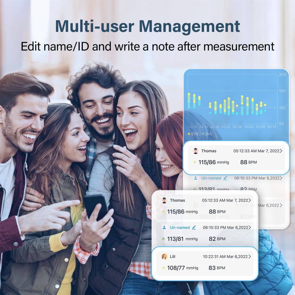 ● The measured data can be displayed, stored and manged by APP software installed on the host device, such as smart phone, tablet, and computer, which can be Android and IOS system.