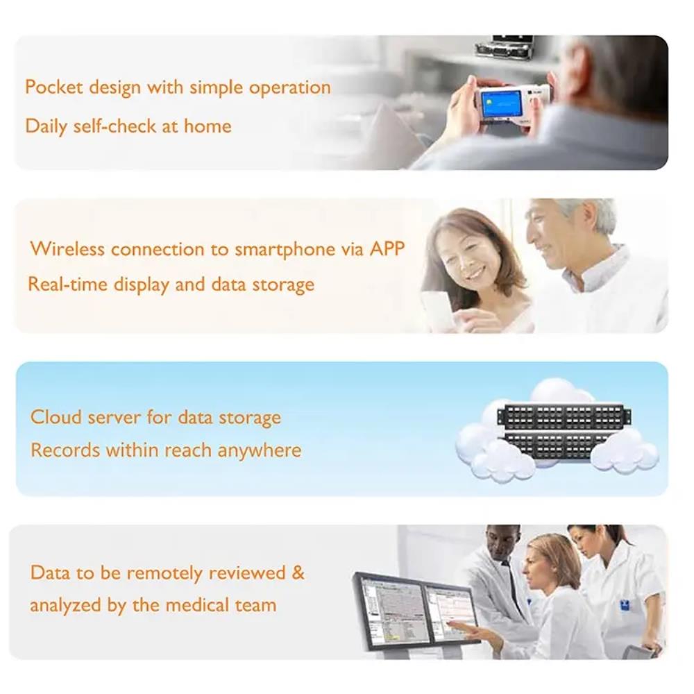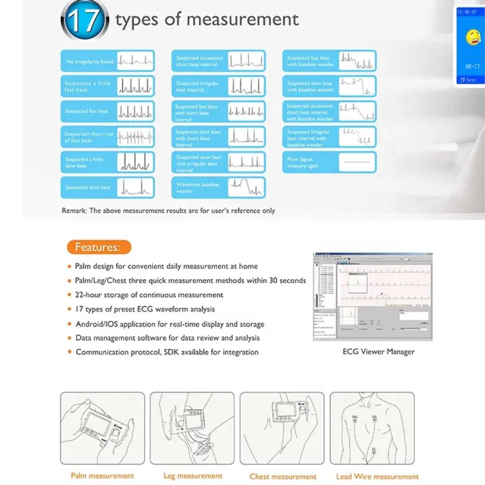 PC-80B ECG Monitor is intended for measuring and recording the ECG signals and average heart rate of adult patient. Advanced measuring technology provides steady and accurate ECG waveform. It is applicable for clinics and homes, and convenient to operate by the patients themselves. Also, can be used for continuous measuring with adhesive electrode pads and lead wire connected to the device.
