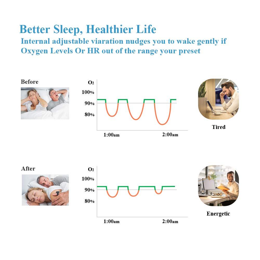 2>Built-in vibrator of O2Ring will vibrate and notify you when oxygen level is lower than your preset threshold, or when your heart rate is too high or too low. Silent vibration, not beep alarm, making you and your partner sleep better.