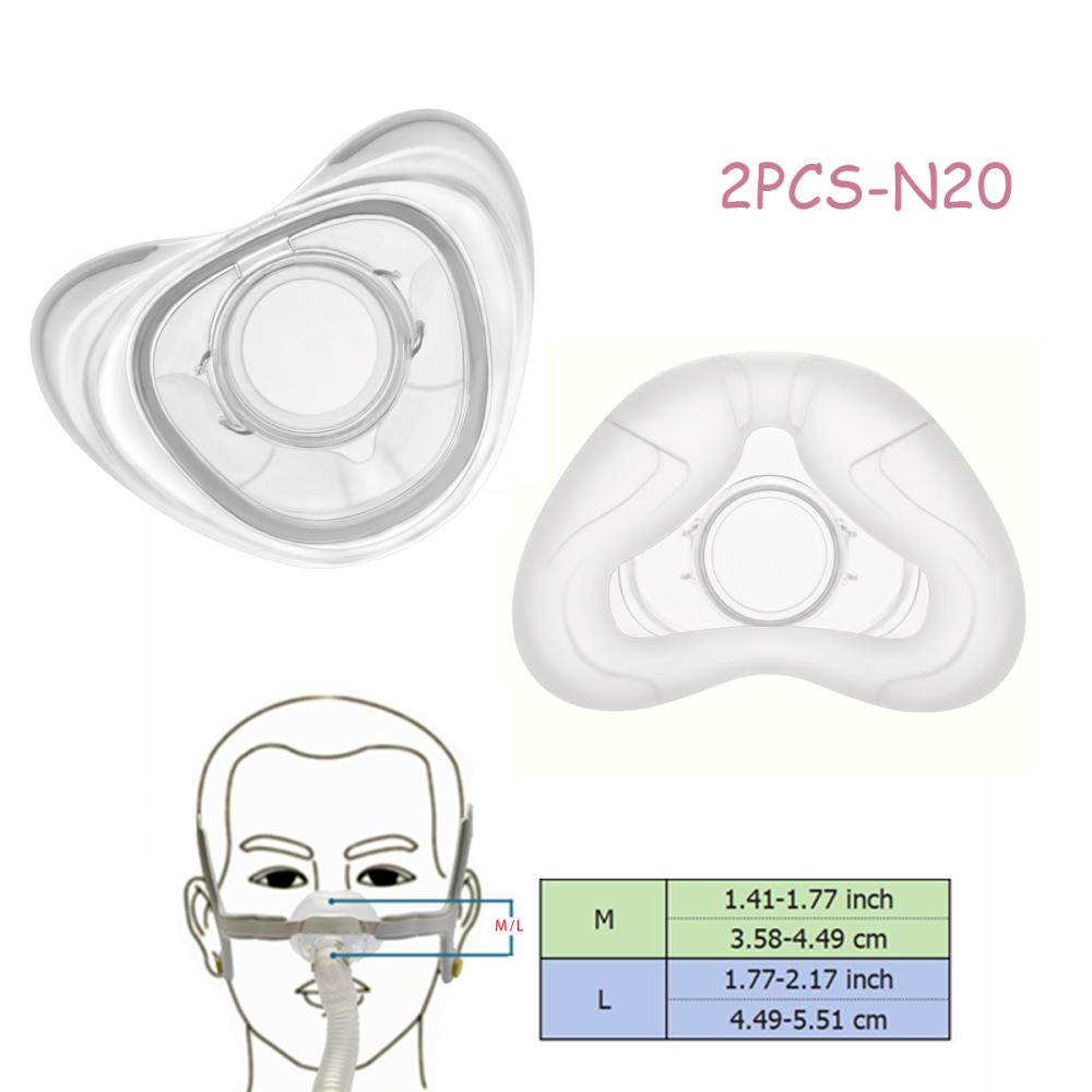 Japan, and PC from Bayer, Germany. Do not contain natural latex. This cushion can be used for AirFit N20 or AirTouch N20 Nose Mask, the nose mask should be replaced about 1-2 months. Our nose mask is softer and more comfortable than the original, reducing the pressure on the face. Made of soft high-grade liquid silicone, it fits the face better, suitable for most face shapes, and will not leak.