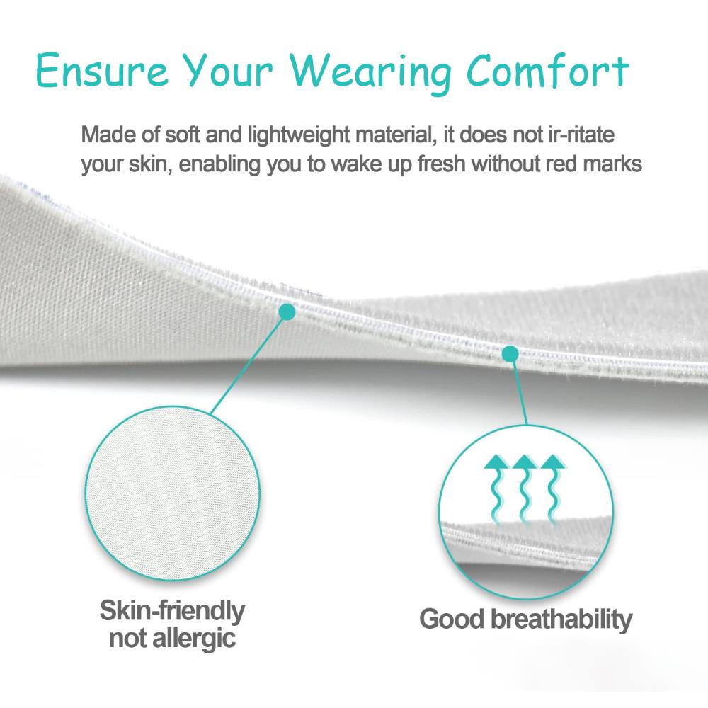 3、REDUCE STRAP SLIP-OFF- Soft fabric side of headgear facing your head, better reduce the slide of strap and hold in place.